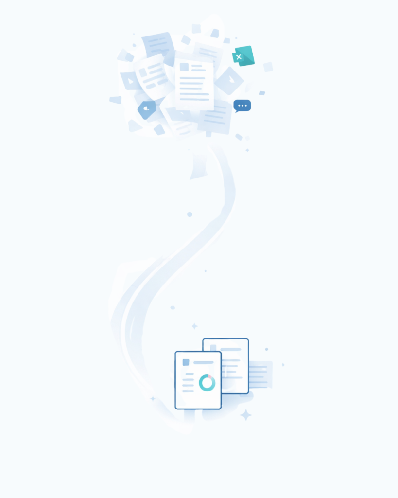 情報があちこちに分かれていて、確認や引き継ぎに時間がかかる。